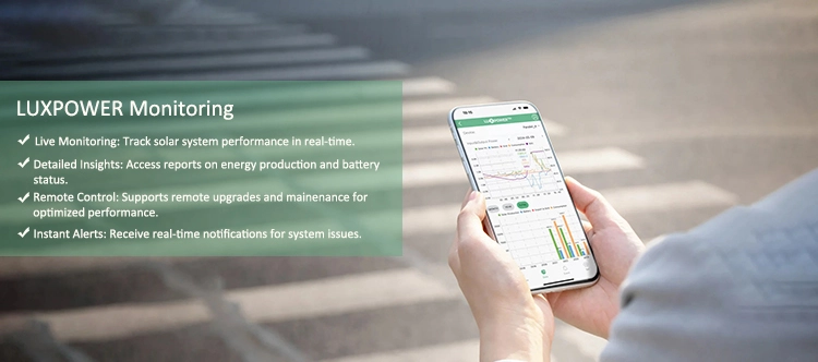 Compact, gemakkelijk te installeren en kosteneffectief, de Luxpower SNA 6000 eenfase-omvormer bevrijdt u moeiteloos van energiebezuren. Engineering met uitgebreide veiligheidsprotocollen, het zorgt voor robuuste bescherming voor gebruikers en verbonden systemen. Daarmee ondersteunt het parallel tot 16 stcs, de oplossing maakt modulaire schaalbaarheid van 5 kW tot 96 kW mogelijk om aan verschillende stroomvereisten te voldoen.